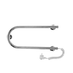 телескопические крепления к стене 3 шт. Электрический полотенцесушитель из нержавеющей стали. Полированный. С кнопкой включения на сетевой вилке. Напряжение 220В