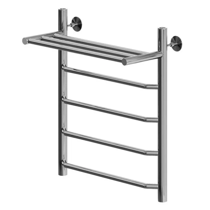 Полотенцесушитель водяной Aquanet Fiona с полкой 600x500, хром годен не только поддерживать подходящий микроклимат в ванной комнате, но и стать украшением ванной. Его форма лесенка покорит любителей домашнего уюта. Благодаря тому, что коллектор полотенцесушителя состоит из секций, можно рассчитывать на хороший обогрев помещения, учитывая параметры изделия: ширину 500 мм и высоту 600 мм. Полотенцесушитель выполнен из качественной нержавеющей стали - материала, который обеспечит защищенность и долговечность при использовании изделия. Производитель предоставляет на полотенцесушитель гарантию 5 лет. Цвет хром легко впишется в дизайн. При установке изделия примите во внимание, что межосевое расстояние - 500 мм.