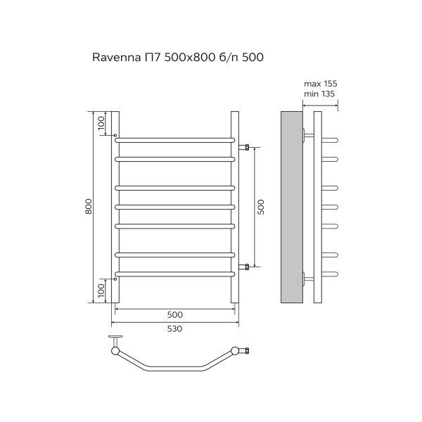 Полотенцесушитель водяной AZARIO RAVENNA AZ07558 500/800 7 секций, боковое подключение, 1, хром