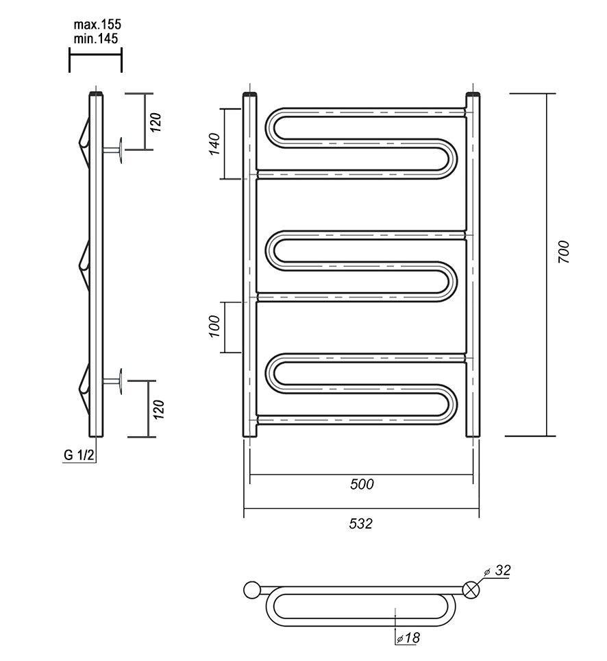 М/о расстояние (межосевое расстояние): 500Количество перекладин: 9Коллекция: ОфелияТип: водяныеЦвет: хромШирина (мм): 532Высота (мм): 700Глубина (мм): 155-145Вес: 3,3Объем: 0,062Тэн/подключение: нижнееСтрана: РоссияГарантия: 10 лет