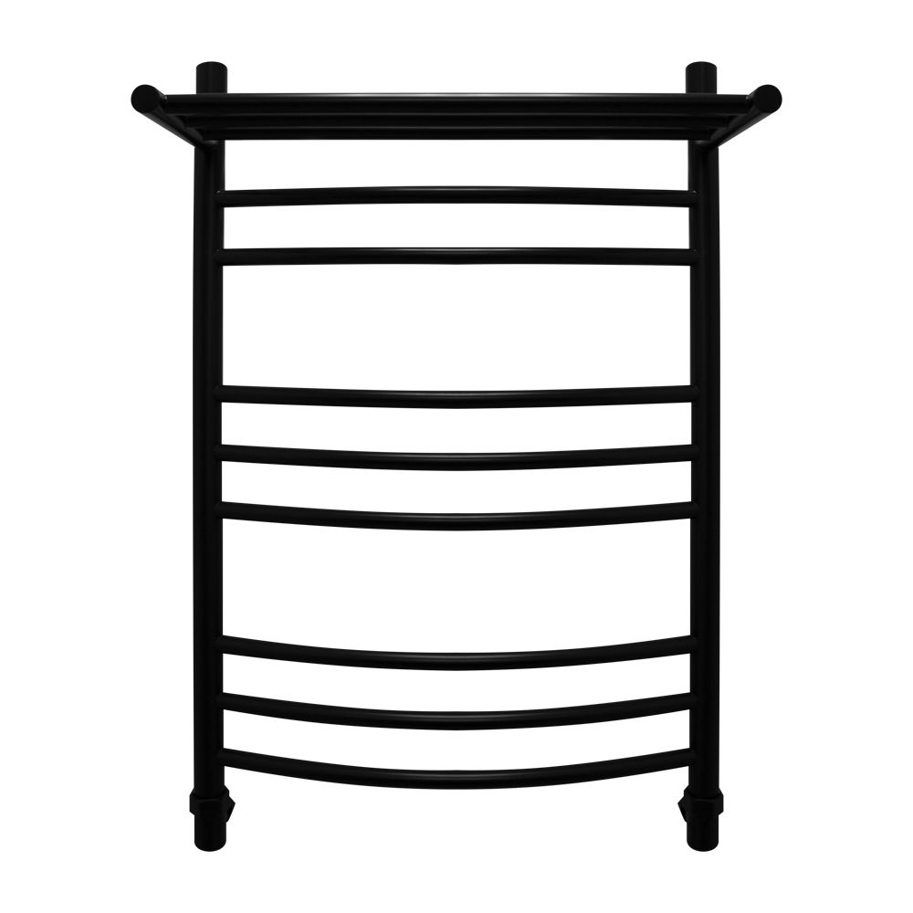 Водяной полотенцесушитель Energy Prestige Modus 800x500 RAL 9005 (черный матовый) - «лесенка c полкой» c выпуклыми перемычками, размещёнными группами. Дополнительная обогреваемая полка с 3 перекладинами увеличивает тепловую мощность и полезную площадь прибора, а также позволяет максимально удобно располагать на нем вещи для просушивания. Используется во всех системах горячего водоснабжения и отопления с рабочим давлением 3 - 15 атм при температуре теплоносителя до 105°С.Межцентровое расстояние: 800 мм (+/-5 мм) при боковом и диагональном подключении, 500 мм (+/-5 мм) при нижнем подключении.В комплектацию входят эксцентрики, позволяющие отрегулировать межцентровое расстояние.Полотенцесушитель изготовлен из высококачественной импортной пищевой нержавеющей стали марки AISI 304 (08Х18Н10). Поверхность изделия окрашена по технологии цветного порошкового напыления - достоинства этой технологии в том, что получаемые изделия прочны, долговечны и экологичны. Сварка швов выполнена по специальной технологии TIG по международному стандарту EN 10217-7. Полотенцесушитель испытан при давлении 50 атм, составляющая его труба — 150 атм, благодаря чему имеет большой запас прочности.Произведен в России. Гарантийный срок - 5 лет. Комплектуется всем необходимым для монтажа. Вся фурнитура производится итальянской фирмой Smart.Комплектация полотенцесушителя: