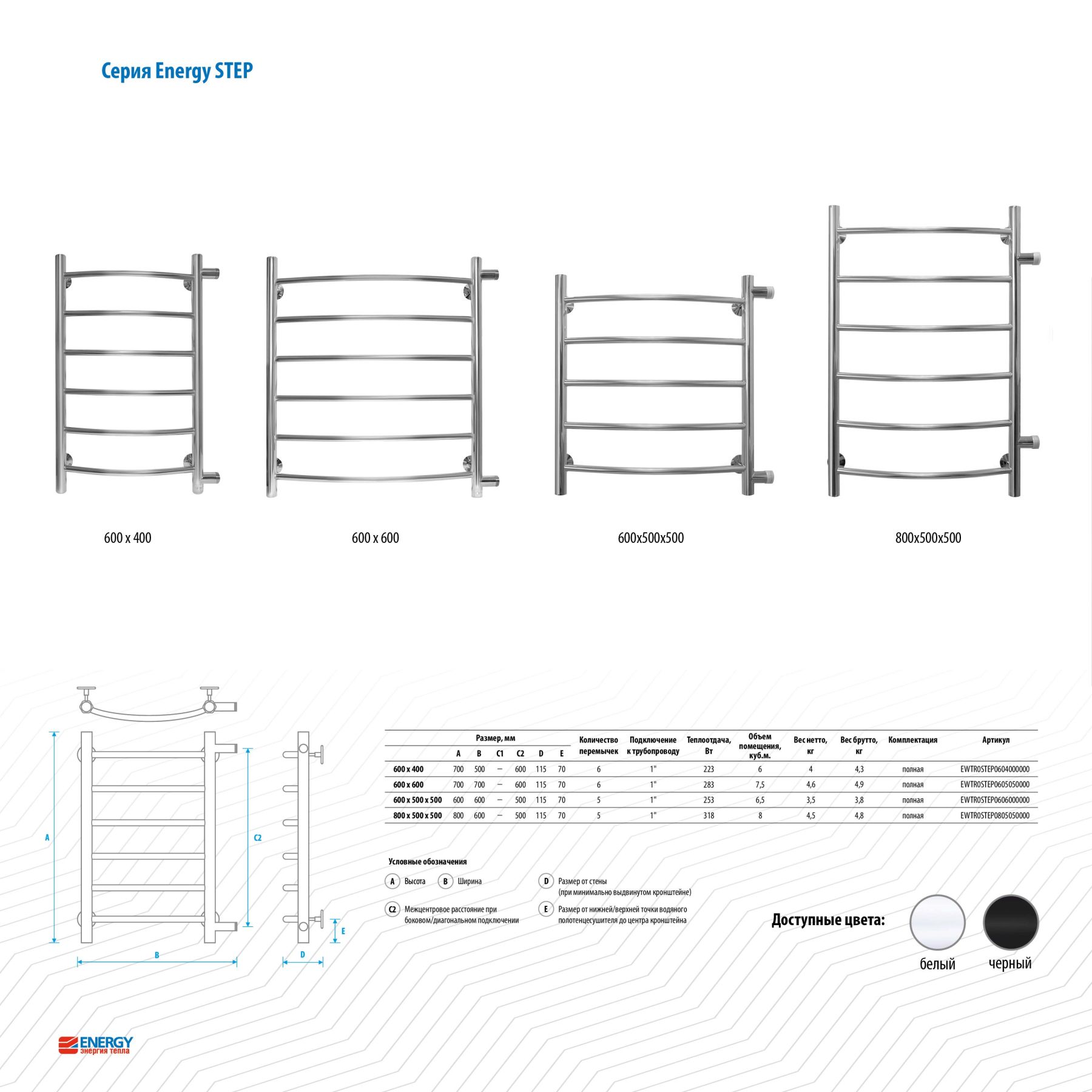 Полотенцесушитель водяной Energy Step EWTR0STEP06040R903M 600 x 400 белый матовый купить