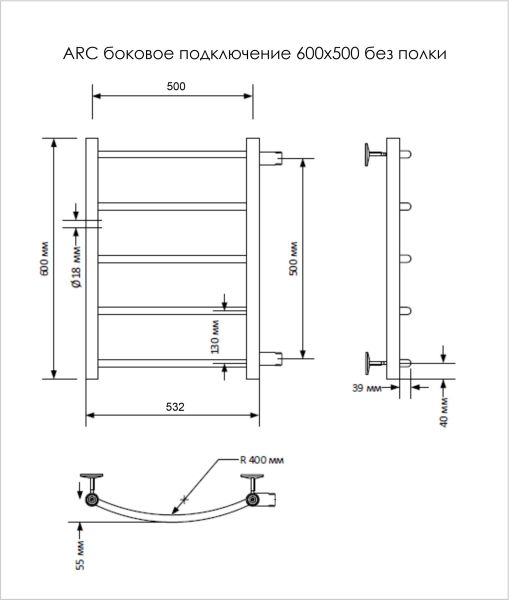 Водяной полотенцесушитель серии «Лесенка» Arc с боковым подключением – это модель, которая изготавливается в большом количестве вариаций размеров. Выбирая полотенцесушитель водяной, стоит учитывать размеры вашей ванной комнаты и места, где он будет размещен.
