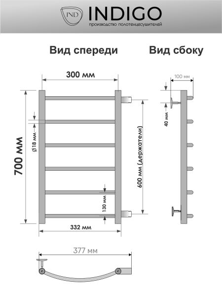 Полотенцесушитель водяной INDIGO Arc с боковым подключением в размере 700х300 (ВхШ) выбирают за его классический вид – лесенки и функциональность. Модель изготовлена из высококачественной нержавеющей стали. Качественная металлообработка в местах подключений обеспечивает плотное прилегание прокладки. Полотенцесушитель проходит тщательный этап полировки, поэтому обладает безупречным блеском. В комплектацию входит изделие, гарантийный талон, держатели 4 шт., заглушка, кран Маевского. Для монтажа необходимо отдельно приобрести нужные вам фитинги. Полотенцесушитель INDIGO Arc застрахован и имеет гарантию 5 лет. Выбирая INDIGO, вы получаете надежный продукт из нержавеющей стали с гарантией качества от Российского производителя.