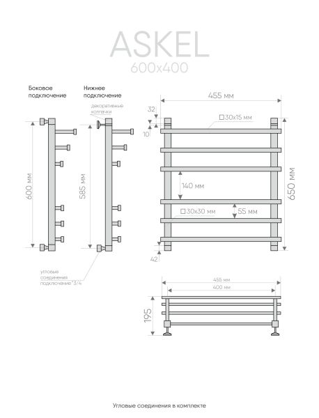 Полотенцесушитель Askel в виде лесенки c каскадным расположением перекладин. Модель изготовлена из высококачественной нержавеющей стали, прослужит долго, не ржавеет со временем. Изделие в цвете хром, с идеальной красивой полированной поверхностью, за счет граней и декоративных элементов блеск смотрится еще более эффектно. Askel это стильная современная профильная модель водяного полотенцесушителя, коллектор и перекладины выполнены из квадратной трубы.