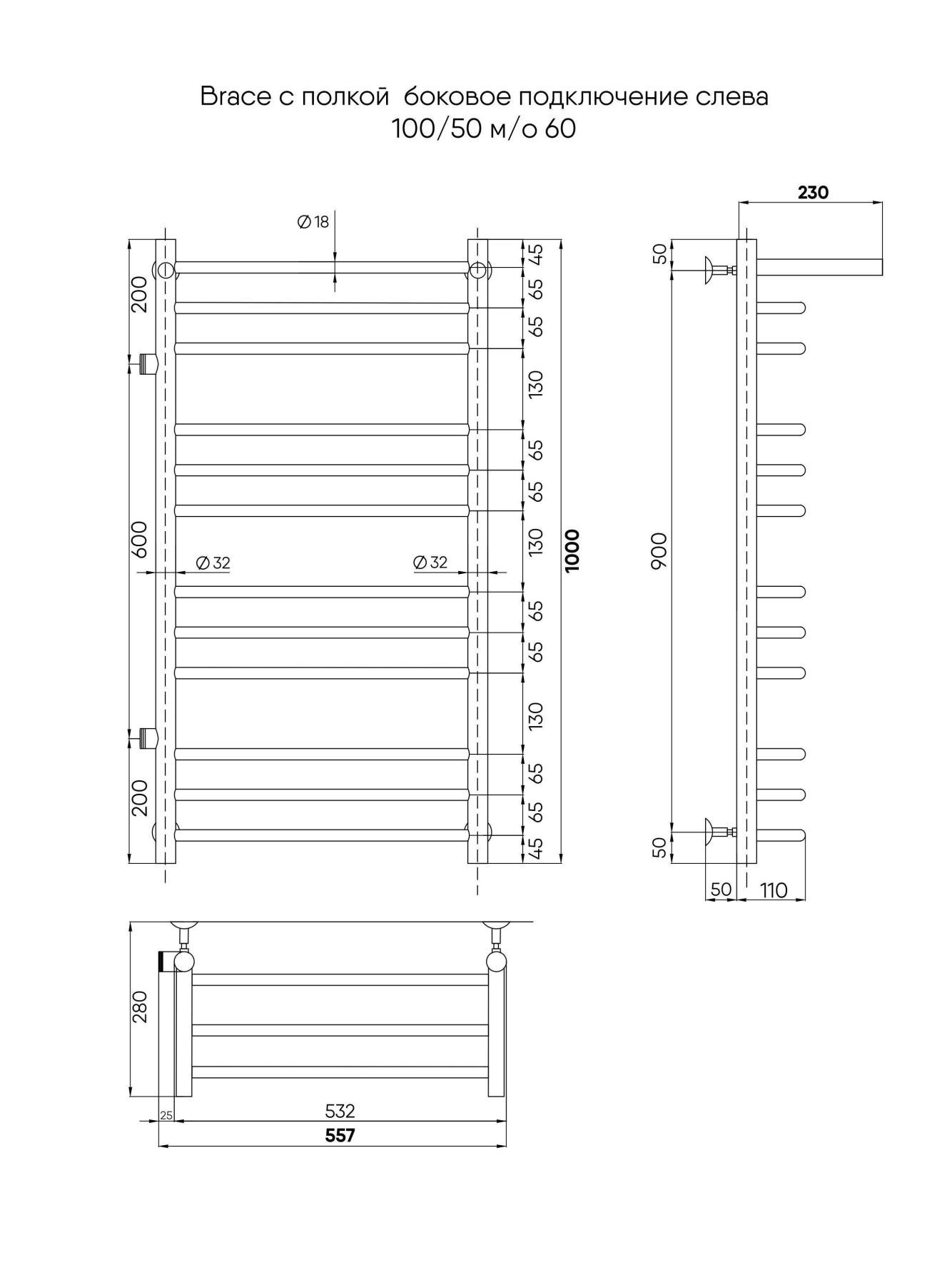 В комплектацию входит изделие, гарантийный талон, держатели 4 шт. Для монтажа необходимо отдельно приобрести нужные вам фитинги. Полотенцесушитель INDIGO Brace застрахован и имеет гарантию 5 лет.