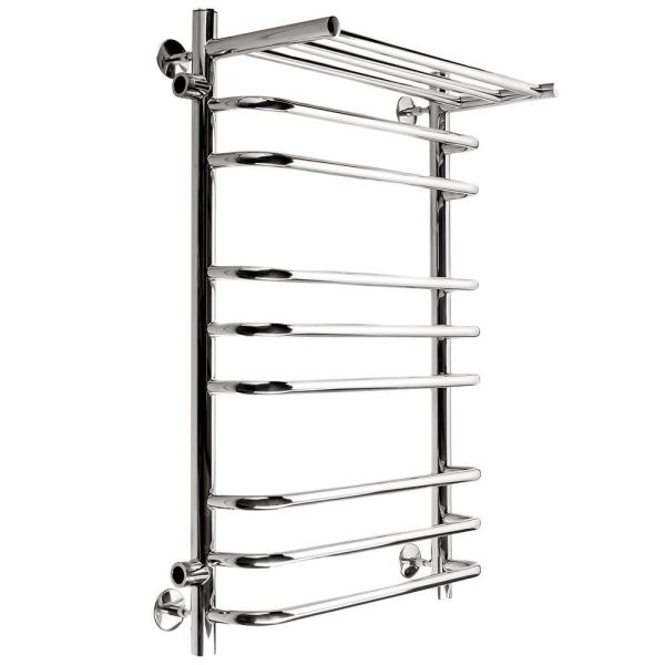 Полотенцесушитель водяной INDIGO Brace с полкой многофункционален и удобен в использовании. Выбирают за его скобообразные перекладины и интересный стиль. Полотенцесушитель боковой изготовлен из высококачественной нержавеющей стали. Качественная металлообработка в местах подключений обеспечивает плотное прилегание прокладки.