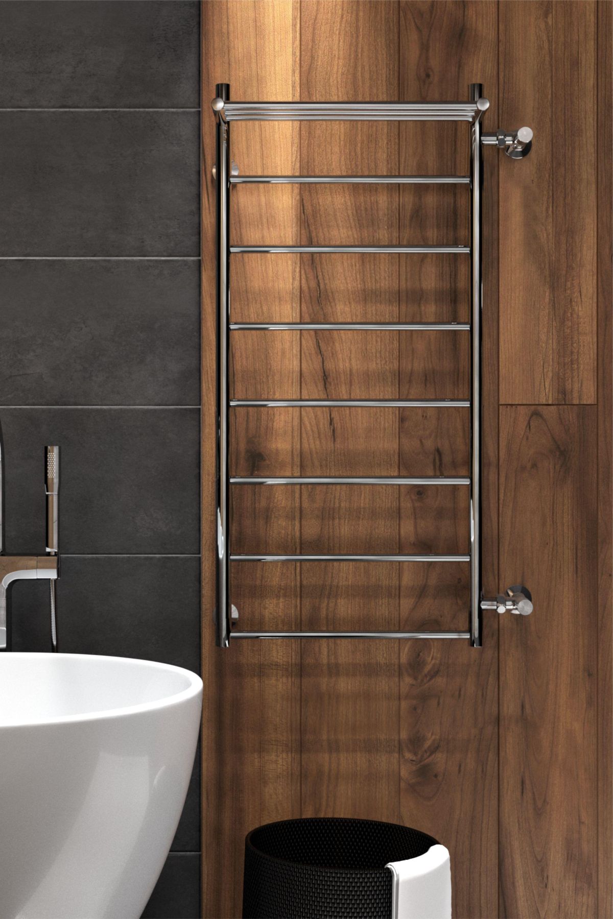 Водяной полотенцесушитель в форме Лесенки Line с полочкой – это оригинальная модель с прямыми перекладинами с дополнительной полкой для полотенец, халатов и других мелочей. Полотенцесушитель марки INDIGO выполнен из нержавеющей стали.