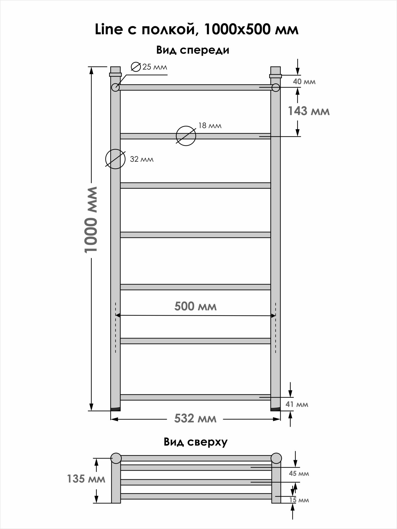 Водяной полотенцесушитель в форме Лесенки Line с полочкой удобен и функционален в использовании. Полочку можно использовать для хранения полотенец, халатов и других мелочей. Полотенцесушитель для ванной выполнен из нержавеющей стали. Имеет универсальный способ подключения.