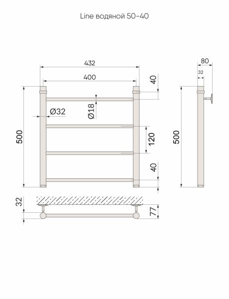 Водяной полотенцесушитель серии «Лесенка» Line имеет большое количество перекладин, что удобно для сушки большого количества текстильных изделий.