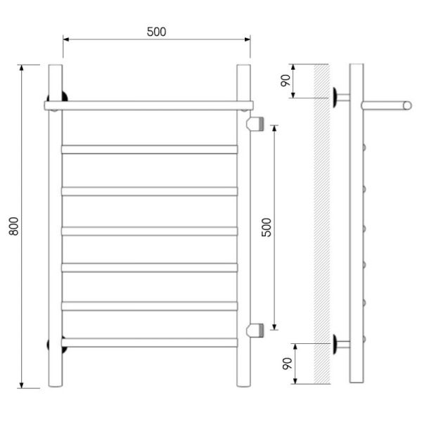 Полотенцесушитель водяной Laris Классик 73208026ЧМ правый с полкой П7 50x80см чёрный матовый