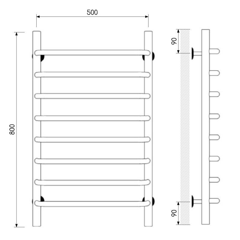 Полотенцесушитель водяной Laris Стандарт 73208015ЧМ П8 50x80см чёрный матовый