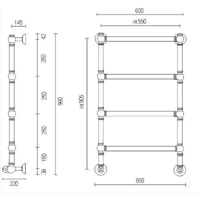 Стационарный модульный полотенцесушитель из латунной трубы диаметром Ø32мм