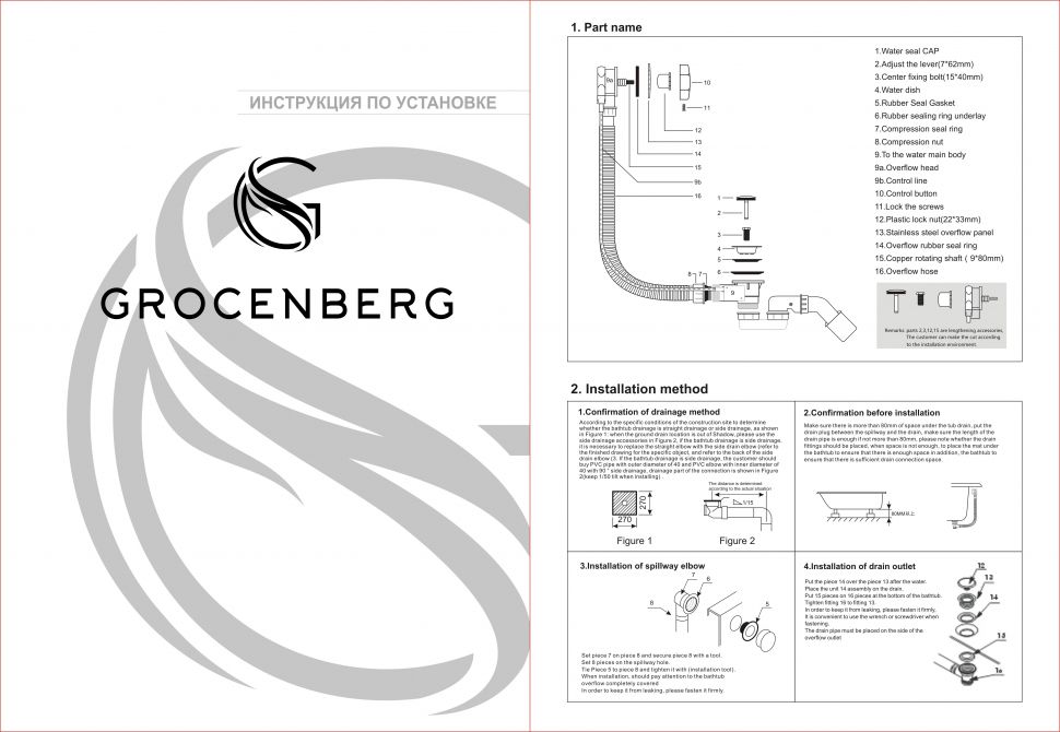 Слив-перелив для ванны GROCENBERG купить в интернет-магазине "Gidro-butik" с гарантией от производителя Большой выбор. Низкие цены Быстрая доставка по Москве и Московской области.