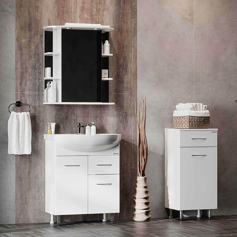 Напольный полупенал для ванной комнаты Onika КАПРИЗ 40, благодаря простому минималистичному дизайну, белой глянцевой поверхности, подойдет под любой интерьер ванной комнаты.