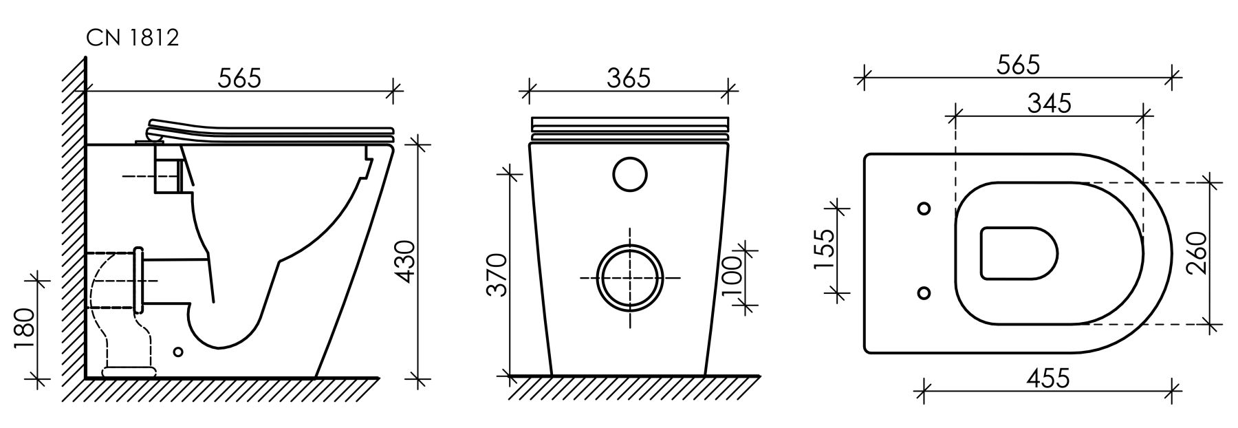 Напольный пристенный унитаз-соло HighLight Rimless, глубокий смыв, горизонтальный (универсальный) выпуск, с крепежом, ультра тонким сидением с функцией плавного закрытия, дюропласт