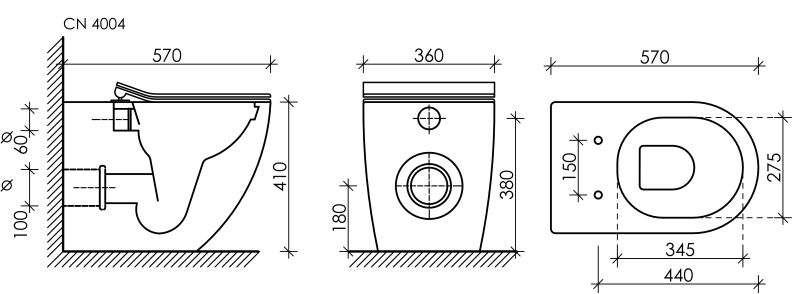 Напольный пристенный унитаз-соло Metropol Rimless, глубокий смыв, горизонтальный (универсальный) выпуск, с крепежом, ультра тонким сидением с функцией плавного закрытия, дюропласт