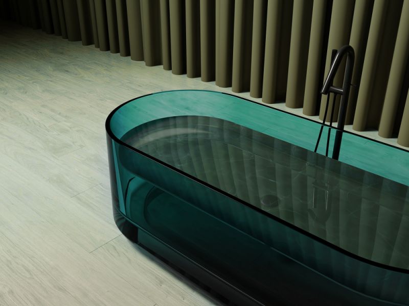 Прозрачная ванна ABBER Kristall AT9708Aquamarin из полиэфирной смолы 170x75см бирюзовый купить