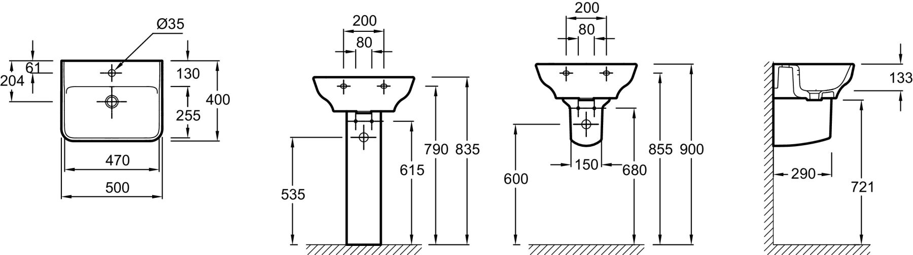 РАЗМЕТКА СВЕРЛЕНИЯ ОТВЕРСТИЯ ДЛЯ СМЕСИТЕЛЯ: 1 отверстие для смесителя