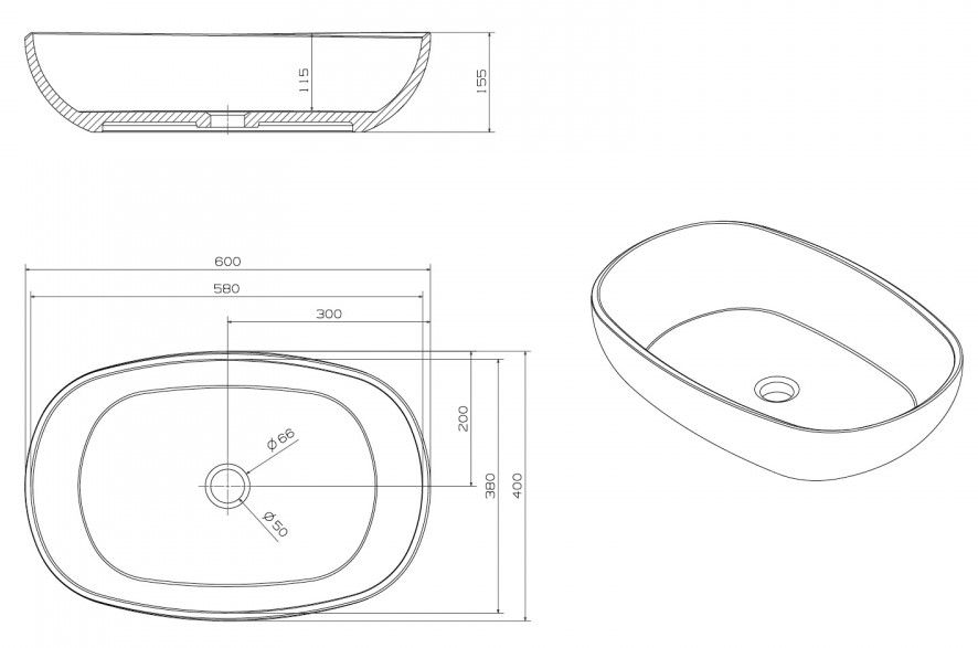 Раковина ABBER Kristall 60см чёрный AT2805Onyx