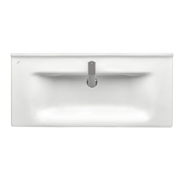 Теперь раковина Миранда доступна в размере 100 см. Широкие бортики изделия позволяют разместить различные ванные принадлежности. Глубокая удобная чаша препятствует разбрызгиванию воды. Раковина хорошо сочетается как с напольной, так и подвесной тумбой.;