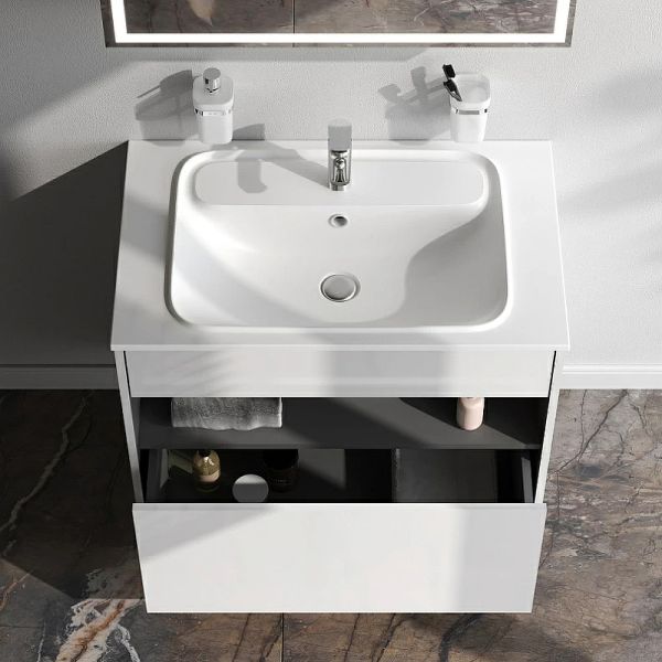 Универсальный монтаж — устанавливается на тумбу стандартного размера с центральным отверстием под смеситель