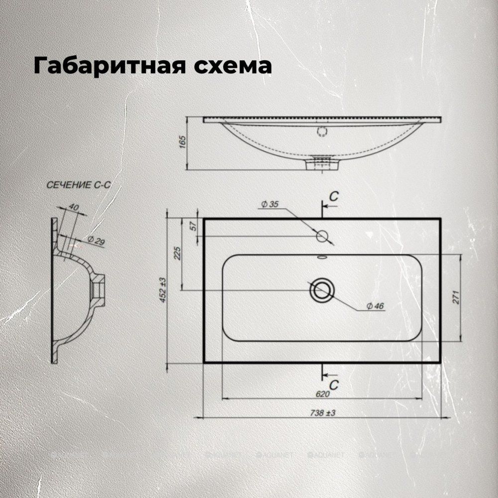 Декоративно-защитный бортик по периметру Глубина чаши 116 мм Ширина 452 мм Борт 60 мм, остальное... Подробнее