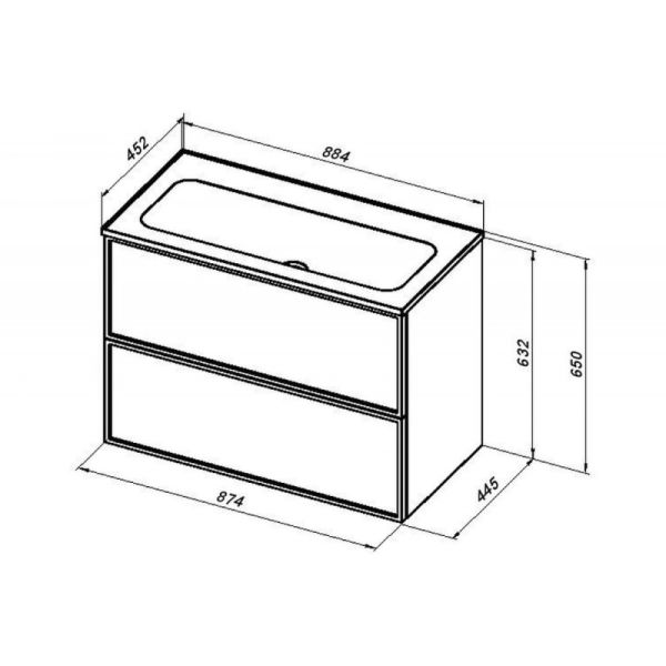 - Борт 60 мм, остальное пространство занимает чаша раковины