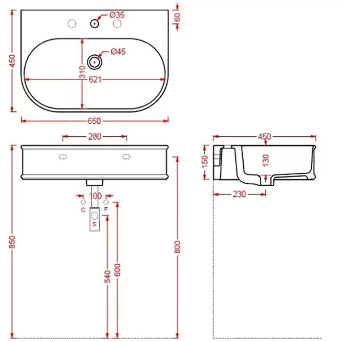 Раковина ArtCeram Atelier ATL003 17 00 *1 черная 65 смШирина, см:65