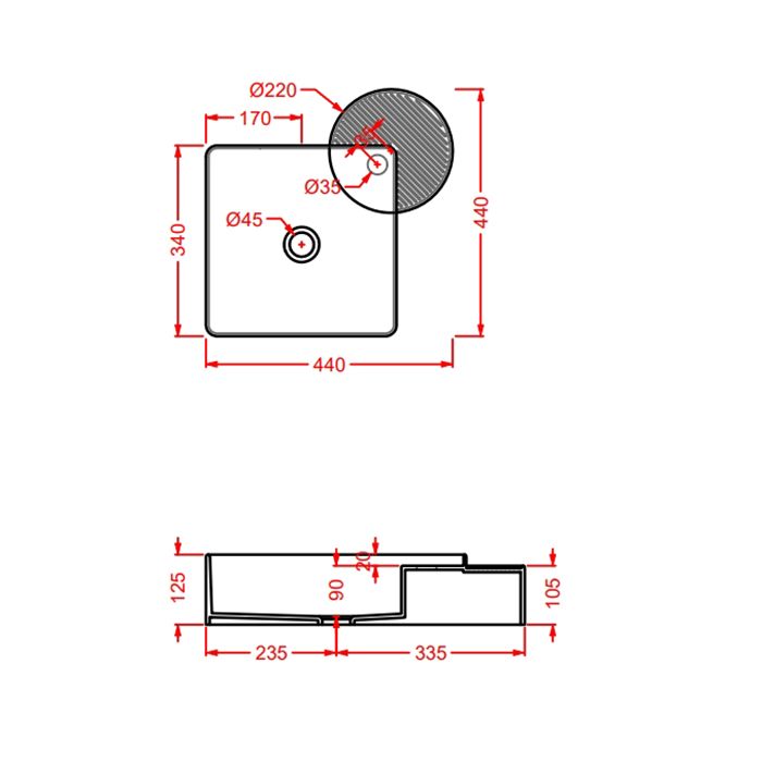 • Отверстия под смеситель: