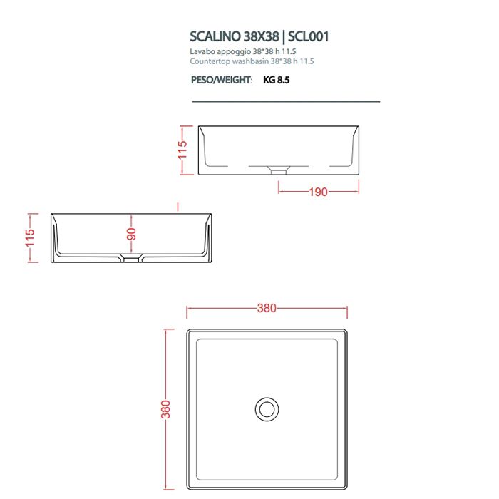 ArtCeram Scalino SCL001 17 00 Раковина накладная, размер 38х38х12 см. Без перелива и плоскости под смеситель. Монтаж накладной на столешницу. Цвет черный матовый.