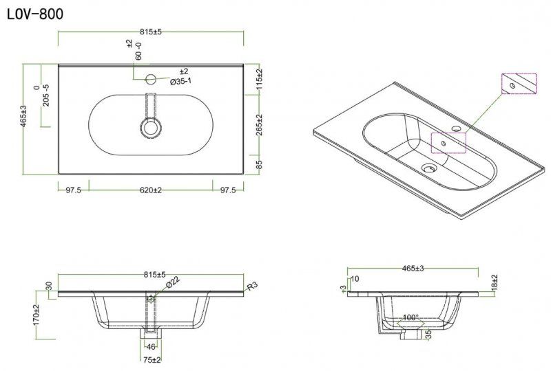 Раковина BelBagno 80см Etna LOV-800-LVB