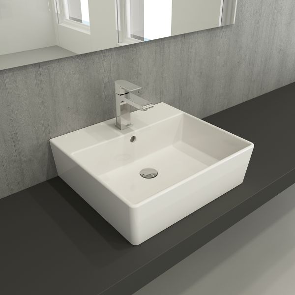 Навесная раковина из санфарфора Berges Ego размером 50х45х15 см.Прямоугольной формы, с готовым отверстием под смеситель, глянцевая белая.Встроенный слив-перелив оформлен декоративной накладкой в цвете хром.Крепеж в комплекте.Гарантия 10лет*Донный клапан необходимо приобрести отдельно
