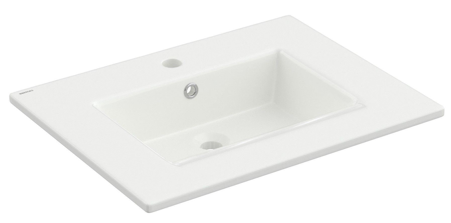 Подвесная/встраиваемая раковина из санфарфора Berges Ego размером 61х47,5х10 см.Прямоугольной формы с широкими бортиками, с отверстием под смеситель, глянцевая белая.Встроенный слив-перелив оформлен декоративной накладкой в цвете хром.Крепеж в комплекте. Гарантия 10 лет.*Донный клапан необходимо приобрести отдельно