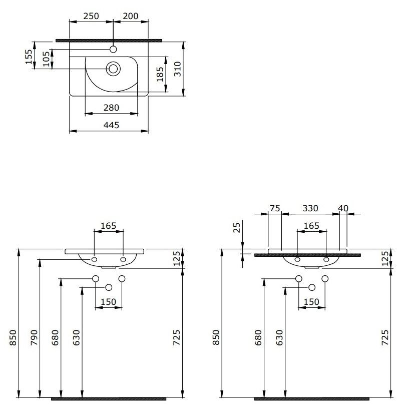 Подвесная раковина из санфарфора Berges Small размером 45х31 см.Прямоугольной формы, с отверстием под смеситель, глянцевая белая.Крепеж в комплекте.Подходит для использования на столешнице.