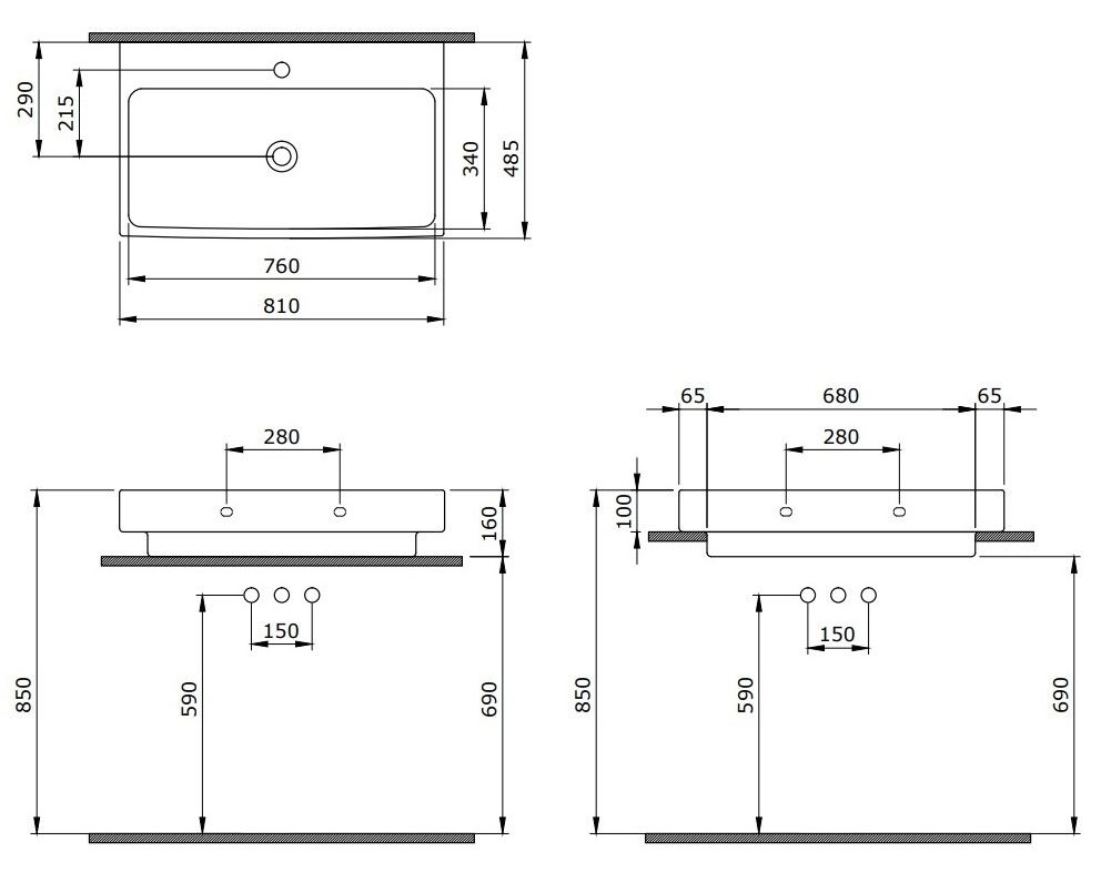 Отверстия под смеситель:1