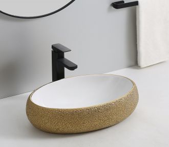 Раковина CeramaLux 433J бело-золотая 49 смПодходит для ванных комнат различной планировки в современном стиле и отличается стильной и изящной формой.Материал: санфаянс.В комплекте поставки: раковина.