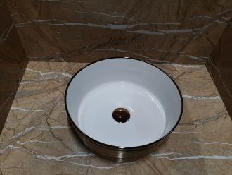 Раковина CeramaLux C1055 бело-золотая 36.5 смПодходит для ванных комнат различной планировки в современном стиле и отличается стильной и изящной формой.Материал: санфаянс.В комплекте поставки: раковина.