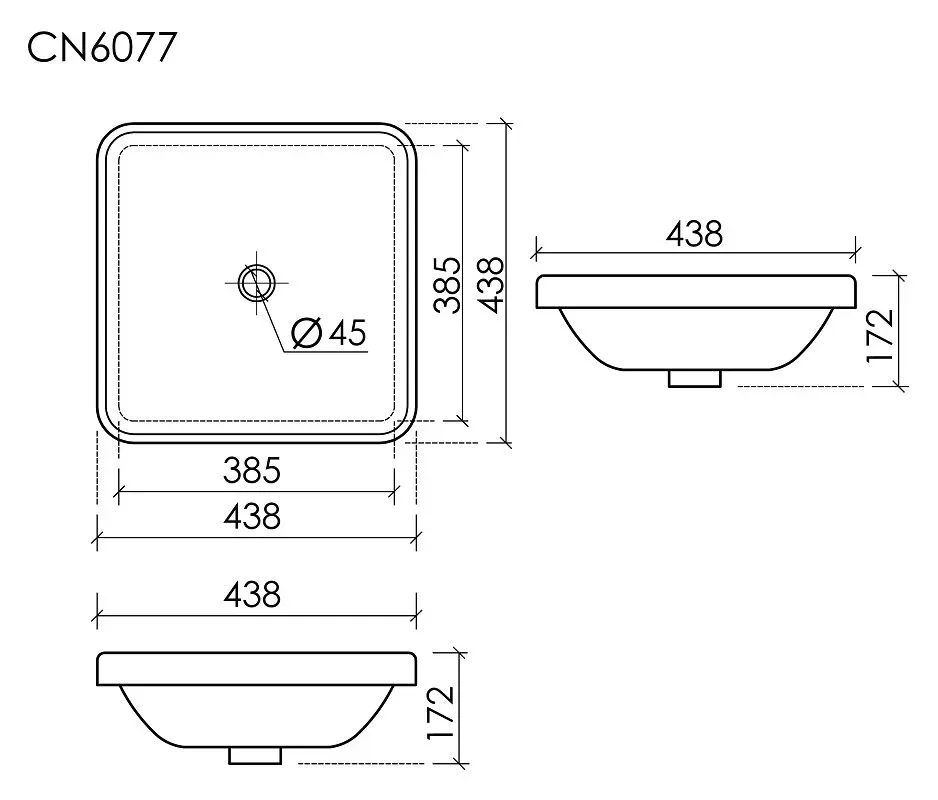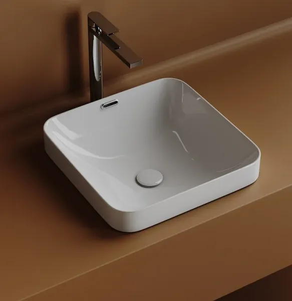 Раковина встраиваемая сверху CERAMICANOVA Element, с отверстием слива - перелива, квадратной формы 438x438x172 мм, с шаблоном для установки, цвет белый, арт. CN6077