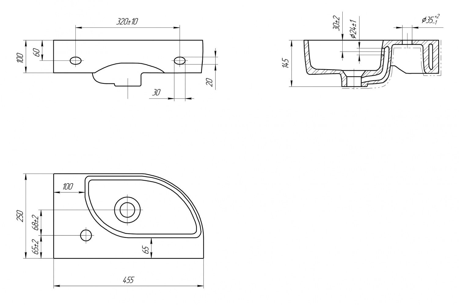 Раковина Cersanit Cameo 45 см левая, угловая, белый, 63405Раковина встраиваемая