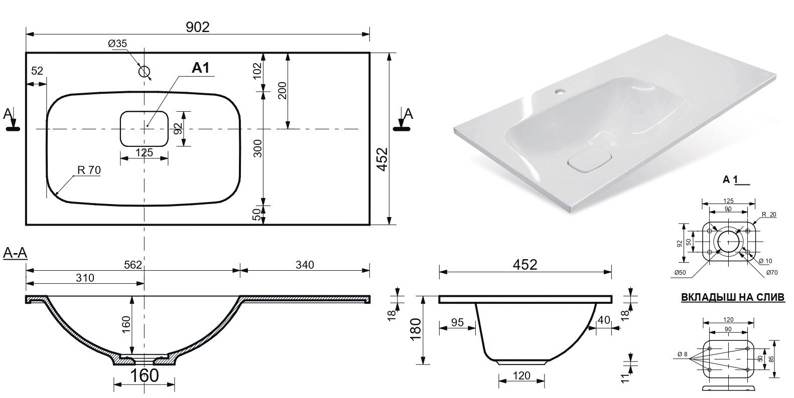 Материал:литьевой мрамор