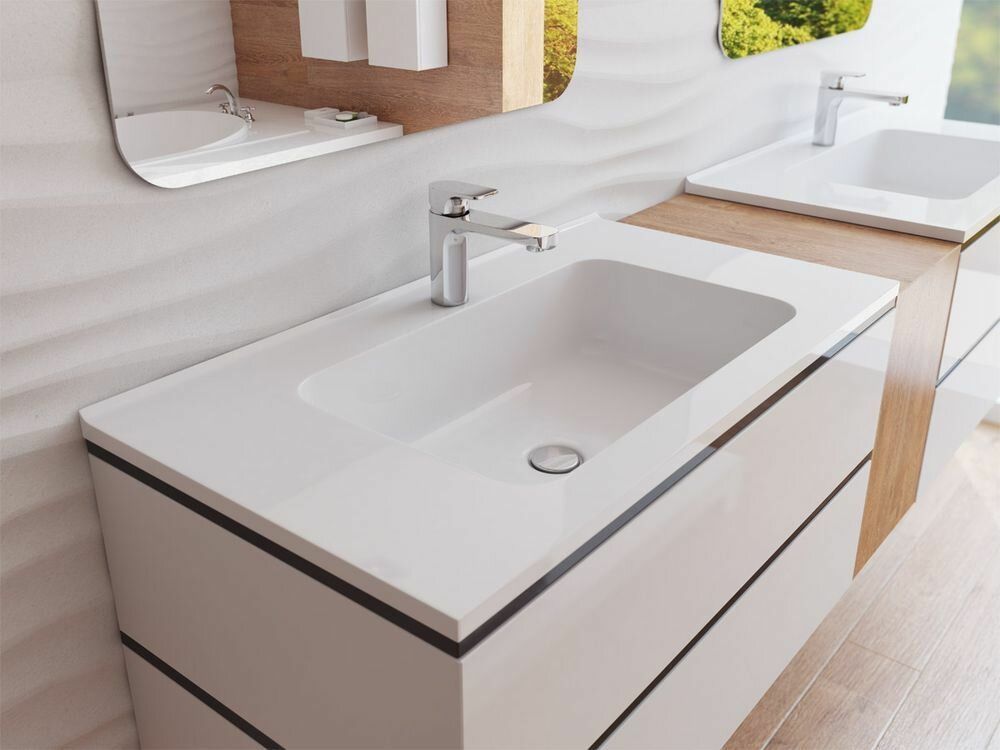 Данная раковина имеет правильную прямоугольную форму и большую рабочую зону, что делает ее использование максимально комфортным. Благодаря прямым линиям и гладкой поверхности раковина «Каре» займёт достойное место как в современном, так и в классическом интерьерах ванной комнаты.