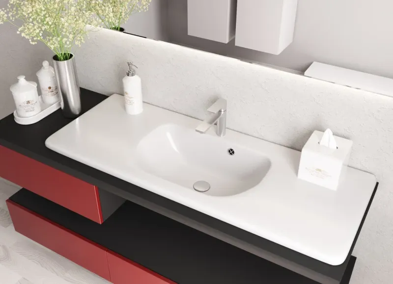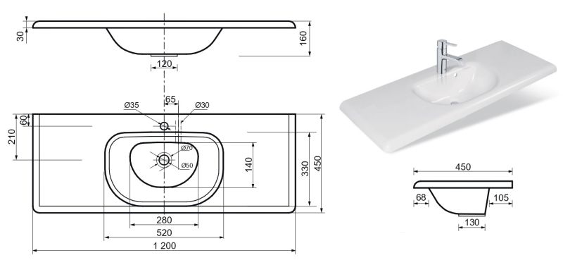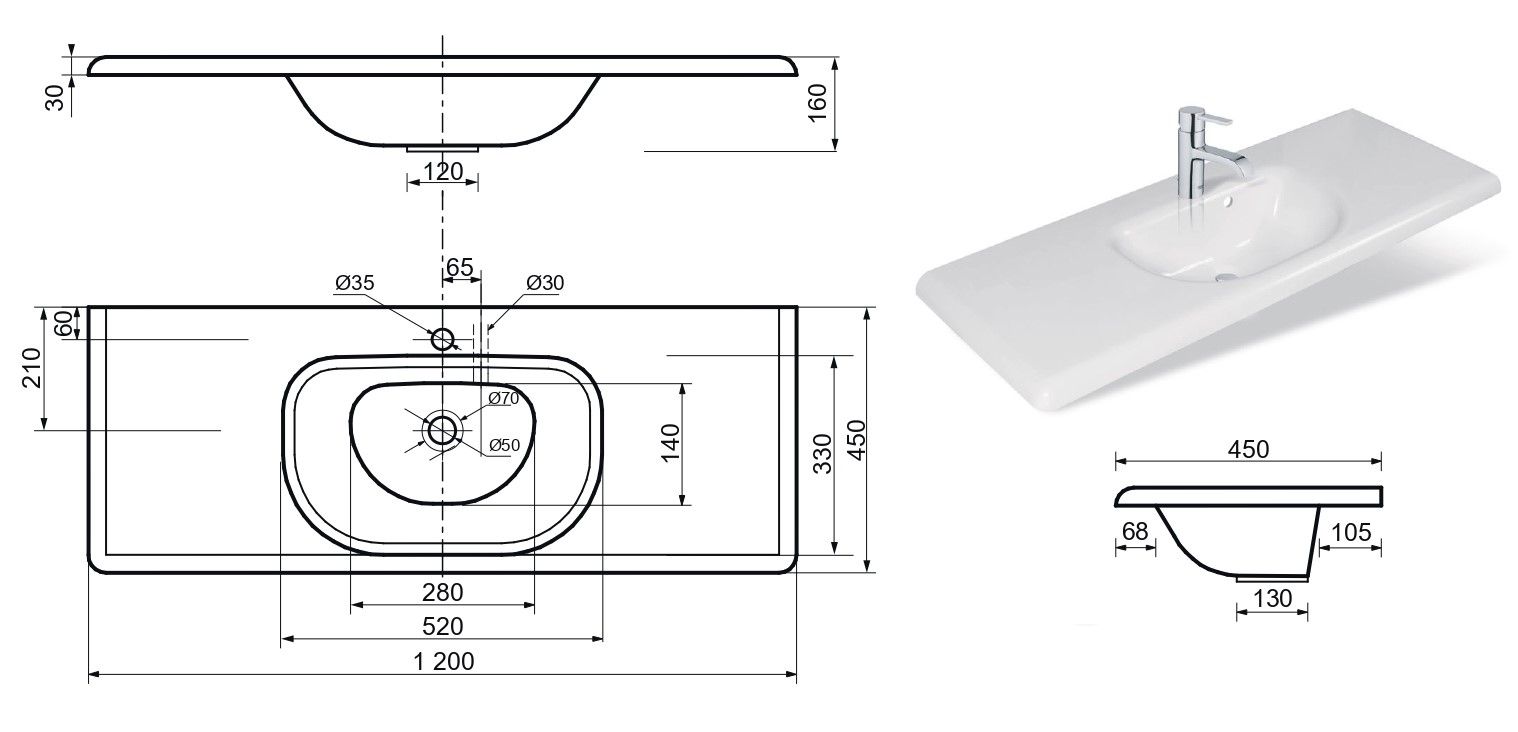 Изящная раковина, имеет сглаженные формы столешницы и чаши, что делает ее использование максимально удобным и приятным.