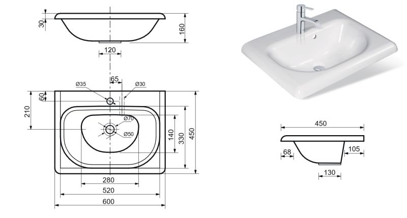 Изящная раковина, имеет сглаженные формы столешницы и чаши, что делает ее использование максимально удобным и приятным.