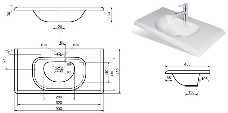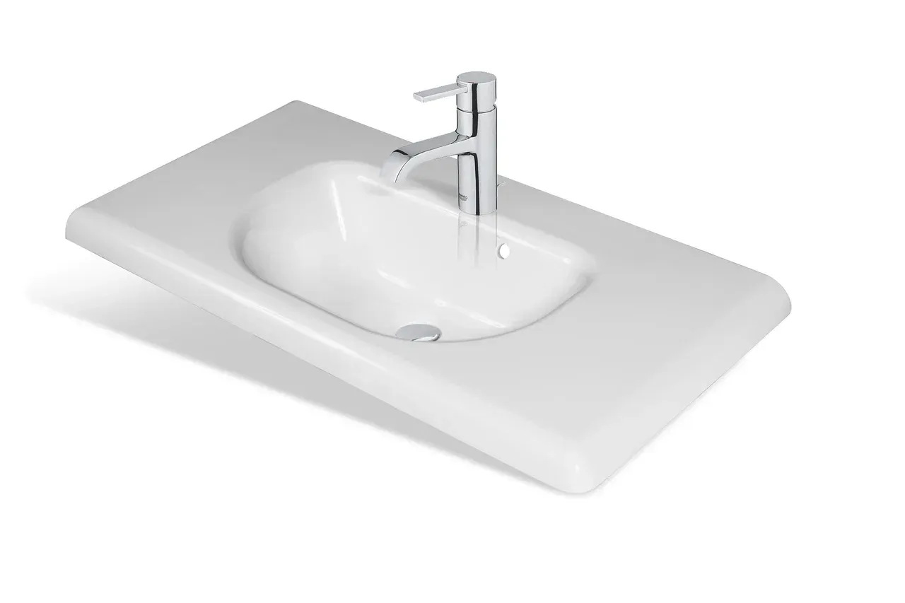 Изящная раковина, имеет сглаженные формы столешницы и чаши, что делает ее использование максимально удобным и приятным.