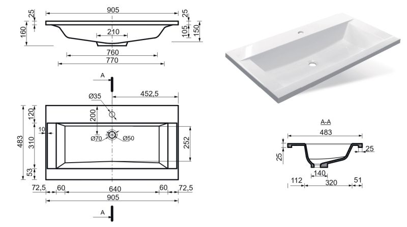 Материал:литьевой мрамор