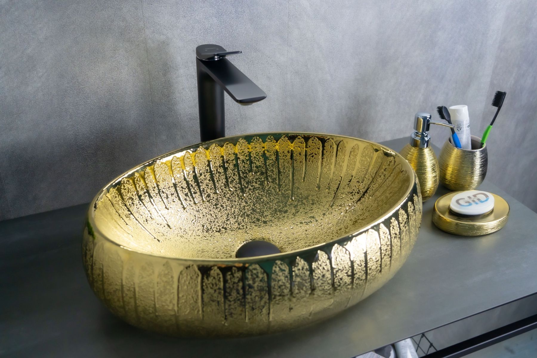 Серия Lago овальной формы — это испанское качество, соответствующее современным европейским требованиям. Раковина накладная GiD 9030G — элегантная модель, изготовленная из высококачественной мелкопористой керамики с роскошным золотистым покрытием. Её овальная форма и изящный цвет придают интерьеру ванной комнаты утончённость и стиль, обеспечивая гибкость в дизайне. Накладной монтаж упрощает установку и дает дополнительное пространство на столешнице.