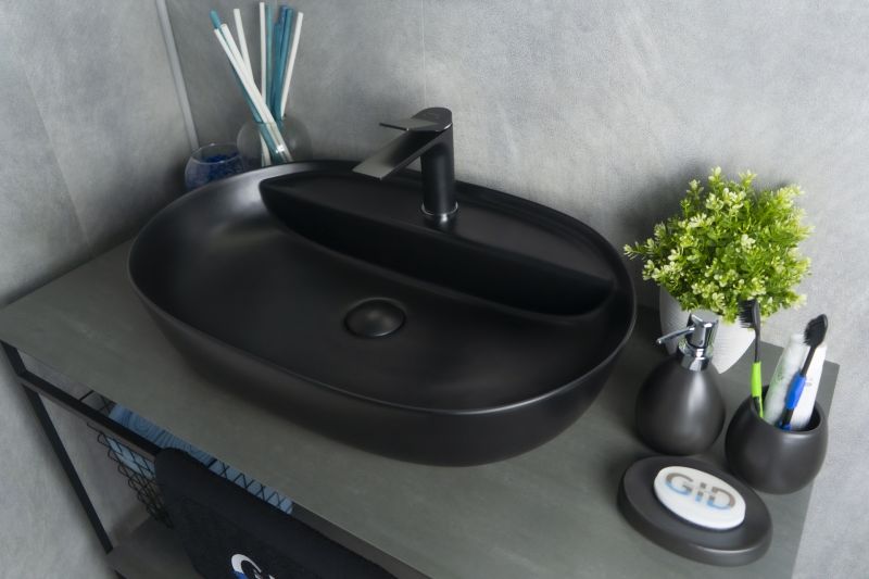 Раковина Gid Bm1346 53345 накладная черная матовая 61x41x14 купить