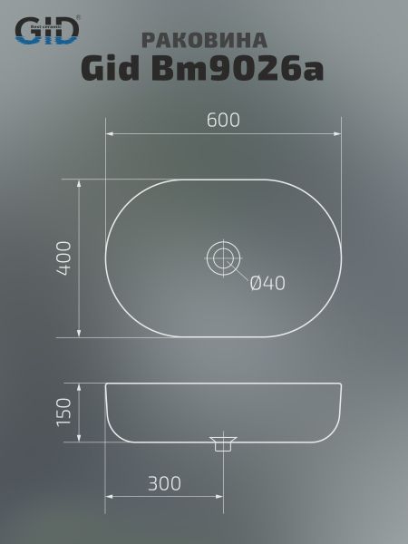 Раковина Gid Bm9026a 53369 накладная черная матовая 60x40x15 купить