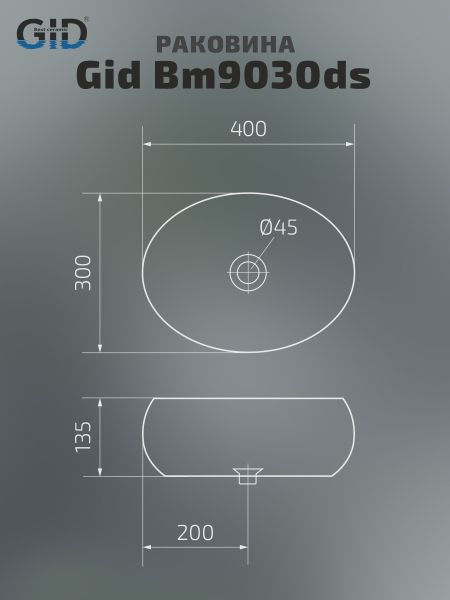 Раковина Gid Bm9030ds 53384 накладная черная матовая 40x30x13.5